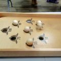 Джакколо-настольная игра, в которой участники должны закатить деревянные шайбы в ворота на игровом поле.